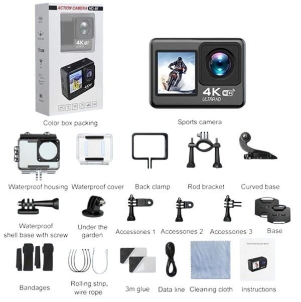 Μίνι κάμερα δράσης διπλής οθόνης 4K/30FPS 20MP με αδιάβροχη θήκη HL18668-247