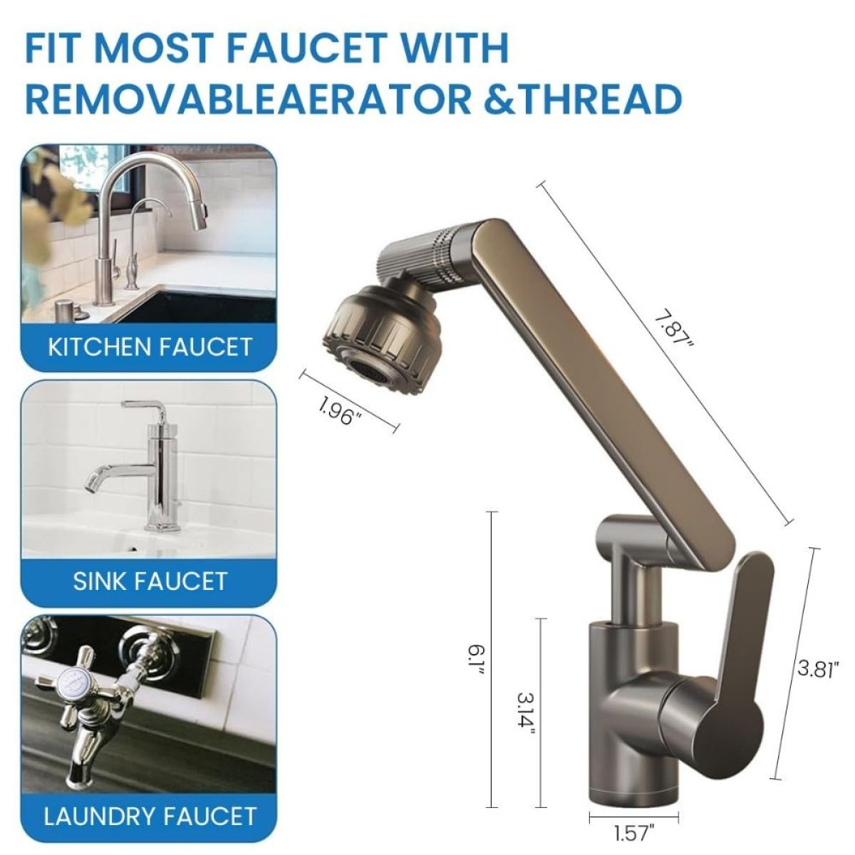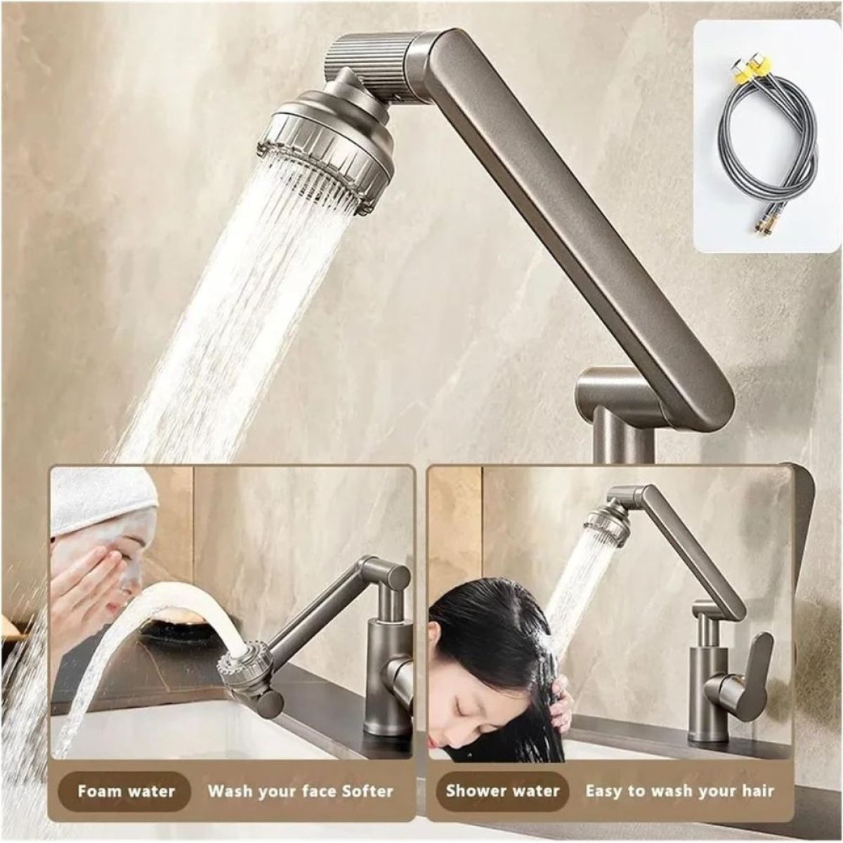 • Ευελιξία χωρίς περιορισμούς: Το περιστρεφόμενο στόμιο 360° επιτρέπει πλήρη ελευθερία κινήσεων. Ιδανική για γέμισμα μεγάλων κατσαρολών, ξέπλυμα φρούτων και λαχανικών ή καθαρισμό του νεροχύτη – προσαρμόζεται απόλυτα σε κάθε εργασία.
