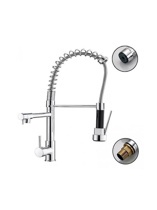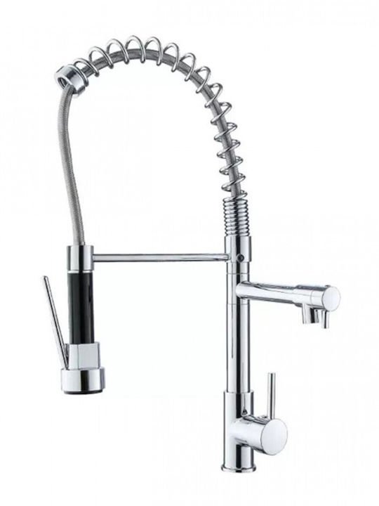 Διαθέτει σπιράλ, για να καθαρίζετε εύκολα κατσαρόλες και ταψιά, αλλά εξασφαλίζει και την πλήρη κάλυψη του νεροχύτη. Η επαναφορά του ελατηρίου είναι αφενός αυτόματη και αφετέρου δεν χρειάζεται να έχετε κενό χώρο στο ντουλάπι κάτω από τον νεροχύτη, όπως χρειάζεται σε μια μπαταρία με αποσπώμενο ντουζ. Τέλος, είναι σπαστή και μπορεί να τοποθετηθεί μπροστά από παράθυρο που ανοίγει προς τα μέσα. Διαθέτει μηχανισμό ανάκλισης με τον οποίο μπορείτε να την μετακινήσετε προς τα κάτω για να ανοίξετε το παράθυρο και στη συνέχεια να την ανυψώσετε πάλι ώστε να συνεχίσετε τις δουλειές σας.