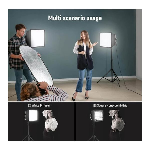 Ο συνδυασμός diffuser και honeycomb grid επιτρέπει καλύτερο έλεγχο της κατεύθυνσης του φωτός, μειώνοντας τη διασπορά και προσφέροντας πιο φυσικό αποτέλεσμα. Το blackout hood περιορίζει τις ανεπιθύμητες διαρροές φωτός από τα πλάγια, καθιστώντας το ιδανικό για πορτρέτα, studio λήψεις, YouTube βίντεο και επαγγελματικές παραγωγές.