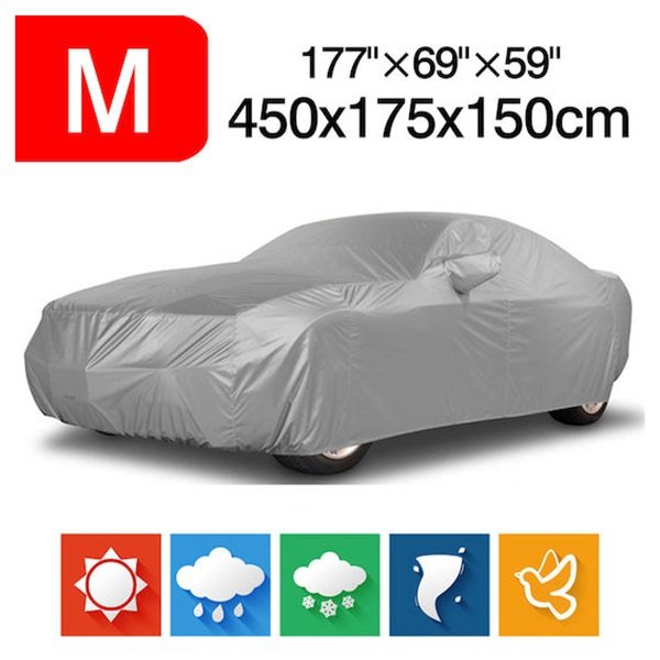 Αδιάβροχη κουκούλα αυτοκινήτου για Sedan με προστασία από βροχή, ήλιο, σκόνη, πάχνη και πάγο. Εύκολη και σταθερή τοποθέτηση με ελαστικό λάστιχο και υποδοχές για πλαϊνούς καθρέπτες. Διαστάσεις: 450×175×150 cm. Ιδανική για καθημερινή προστασία του οχήματός σας.