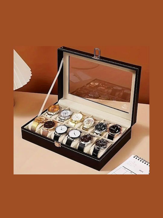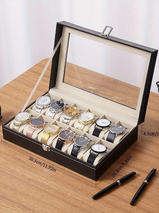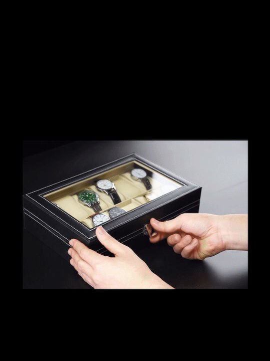 Κομψή και πρακτική θήκη για την ασφαλή αποθήκευση και παρουσίαση έως 12 ρολογιών. Το διάφανο καπάκι επιτρέπει την εύκολη προβολή των ρολογιών χωρίς να χρειάζεται να ανοίξετε τη θήκη, προστατεύοντας ταυτόχρονα από σκόνη και φθορές.