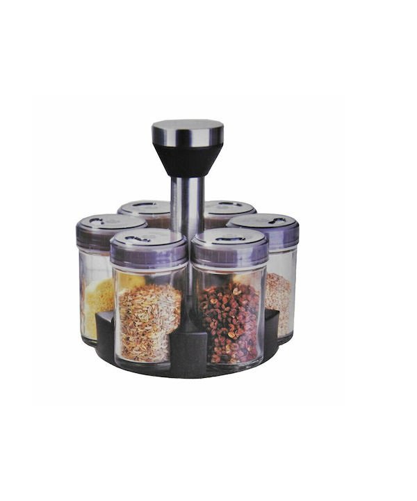 Σετ με 6 δοχεία μπαχαρικών σε περιστρεφόμενη πλαστική βάση, με όμορφο και μοντέρνο σχεδιασμό, χάρη στον οποίο θα ταιριάζει απόλυτα στο εσωτερικό της κουζίνας.