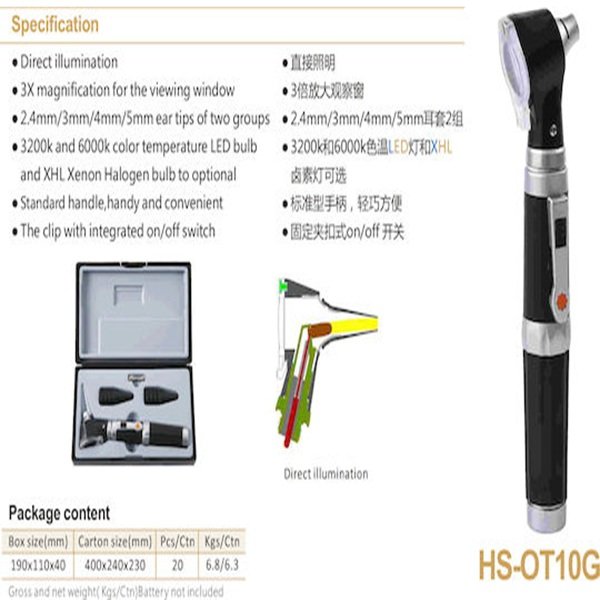 Ηλεκτρικό ωτοσκόπιο HS-OT10G για έλεγχο του εξωτερικού ακουστικού πόρου και του τυμπάνου. Φορητό, ασφαλές και εύχρηστο, με εργονομική λαβή για σταθερό και άνετο κράτημα.