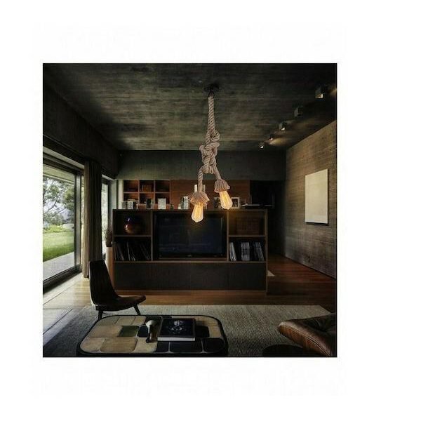 Universo Vintage Κρεμαστό Φωτιστικό Ανάρτηση με Σχοινί και Ντουί E27 σε Μπεζ Χρώμα