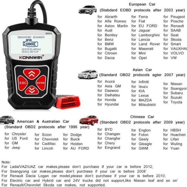 Διαγνωστικό Αυτοκινήτου Ψηφιακό OBD 2 με Καλώδιο Konnwei KW310