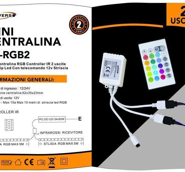 Controller 12V και Τηλεχειριστήριο για 2 LED ταινίες με μάξιμουμ μήκος 5Μ η κάθε μια Universo TE-RGB2 Λευκό