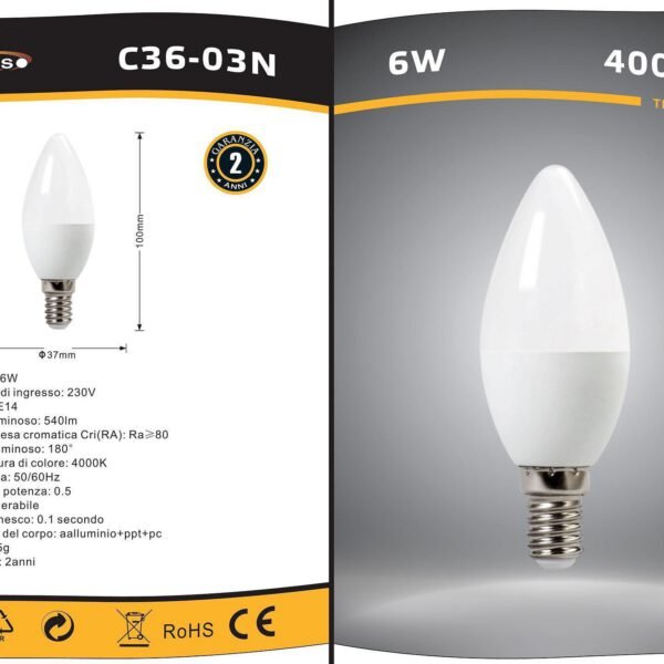 Universo Λάμπα LED για Ντουί E14 4000K Φυσικό Λευκό 540lm 6W C36-03N