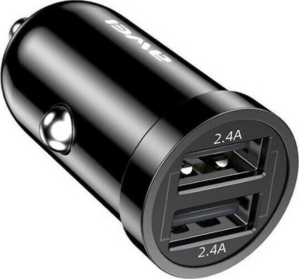 Awei Φορτιστής Αυτοκινήτου Μαύρος C-826 Συνολικής Έντασης 2.4A Γρήγορης Φόρτισης με Θύρες: 2xUSB 23783095