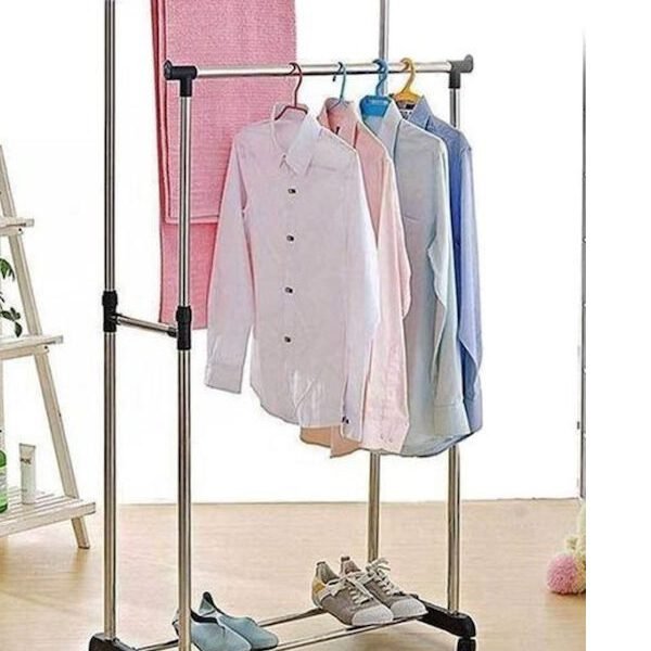 Πτυσσόμενη Τροχήλατη Κρεμάστρα Δαπέδου από Μέταλλο με Παπουτσοθήκη 80-160x140x42cm JY-011 Ασημί