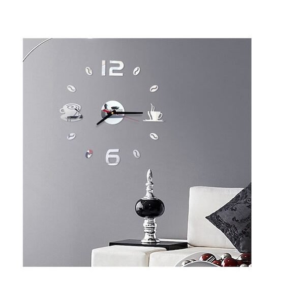 3D Ρολόι Τοίχου Αυτοκόλλητο Μεταλλικό Ασημί 100678
