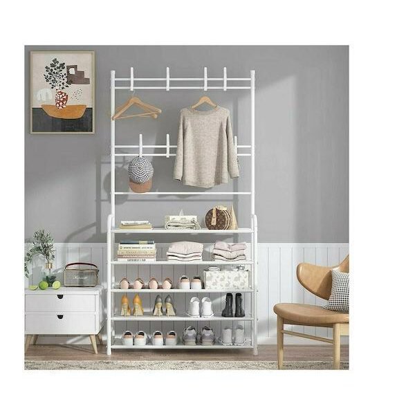 HP-25671 Έπιπλο Εισόδου με Κρεμάστρα & Παπουτσοθήκη White 80x26x168εκ.