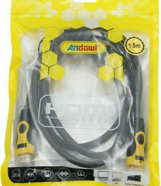 Andowl HDMI 1.4 Braided Cable HDMI male – HDMI male 1.5m Μαύρο