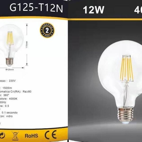 Λάμπα LED για Ντουί E27 12W 4000K Φυσικό Λευκό 1500lm Universo G125-T12N