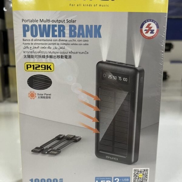 Ηλιακό Power bank με 2 φακούς και 2 θήρες USB 10 000mAh Awei P129K Μαύρο