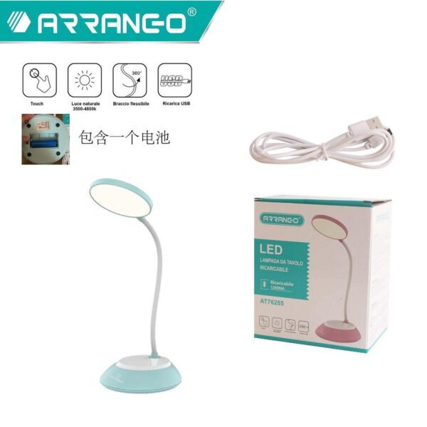 Επαναφορτιζόμενο εύκαμπτο επιτραπέζιο φωτιστικό LED USB με Φυσικό φως 4800Κ Arrango AT76285 Μπλε