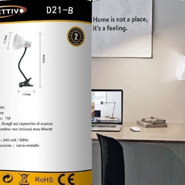 Eύκαμπτο επιτραπέζιο φωτιστικό με μανταλάκι στήριξης Obiettivo D21-B Λευκό