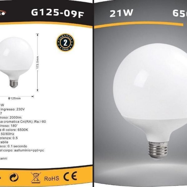 Universo Λάμπα LED για Ντουί E27 6500K Ψυχρό Λευκό 2000lm 21W G125-09F