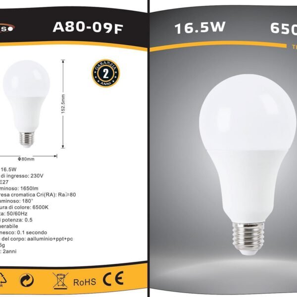 Universo Λάμπα LED για Ντουί E27 6500K Ψυχρό Λευκό 1650lm 16.5W A80-09F