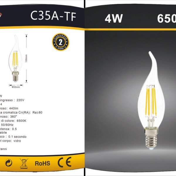 Universo Λάμπα LED για Ντουί E14 6500K Ψυχρό Λευκό 440lm 4W C35A-TF