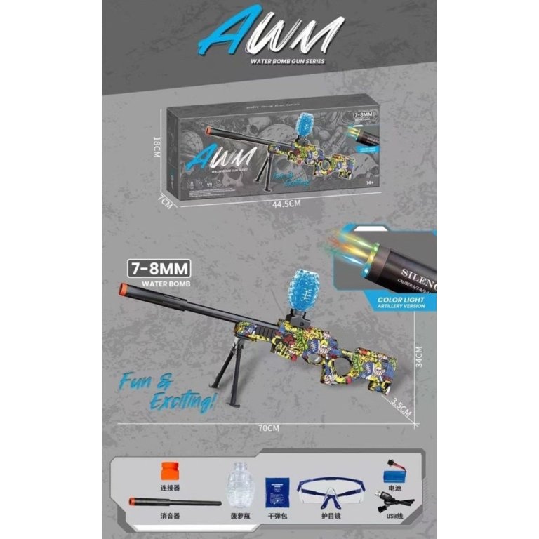 Το παιδικό όπλο νερού Gel Blaster AWM προσφέρει ατελείωτη διασκέδαση με μπαλάκια νερού 7–8mm, ιδανικό για παιχνίδι σε εξωτερικούς χώρους.