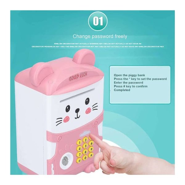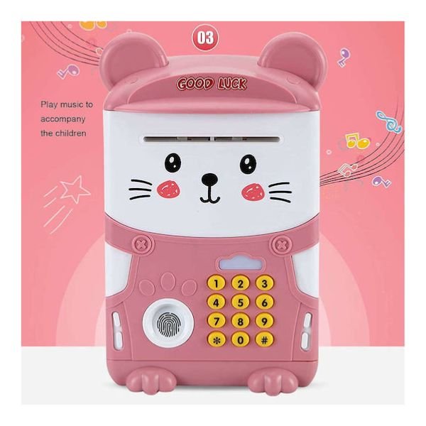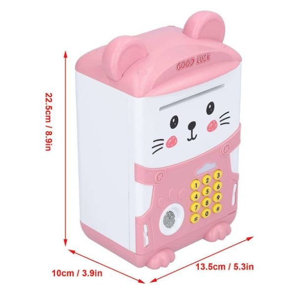 Παιδικός κουμπαράς ATM με κωδικό και δακτυλικό αποτύπωμα. Με ήχους και λειτουργία μουσικής, ιδανικός για εκμάθηση αποταμίευσης.