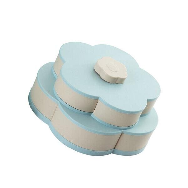 1. Περιστρέψτε το λουλουδάκι που βρίσκεται στη κορυφή της πιατέλας, και θα ανοίξουν πολλές μικρές θήκες για να αποθηκεύετε τα γλυκά.