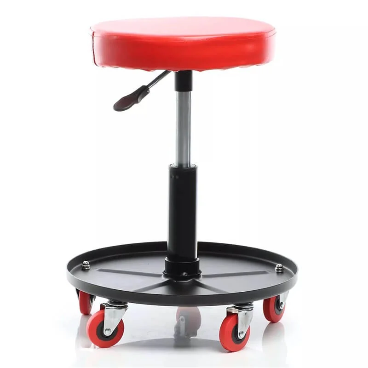 Περιστρεφόμενο 360° Σκαμπό Εργασίας Στρογγυλό με 5 Τροχούς Κόκκινο-Μαύρο
