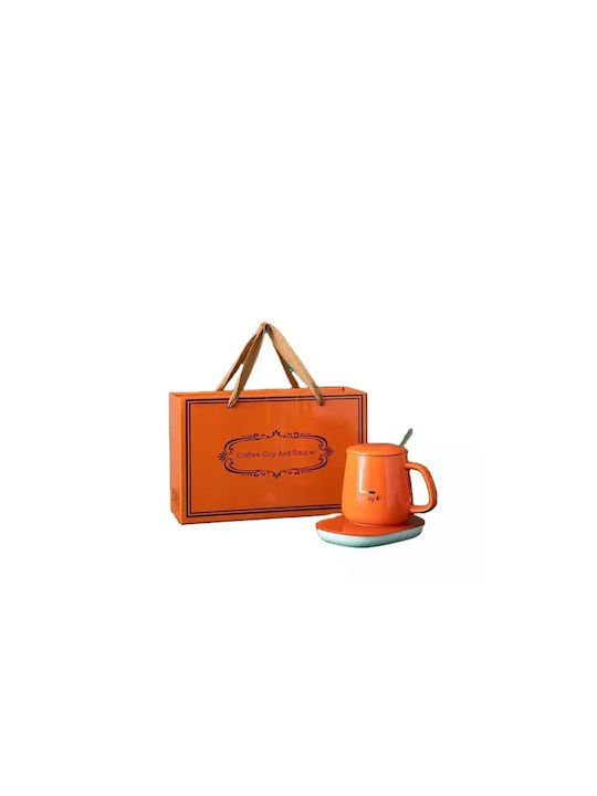 Πήλινη Κούπα Με Θερμαινόμενη Βάση Lucky σε πορτοκαλί χρώμα.