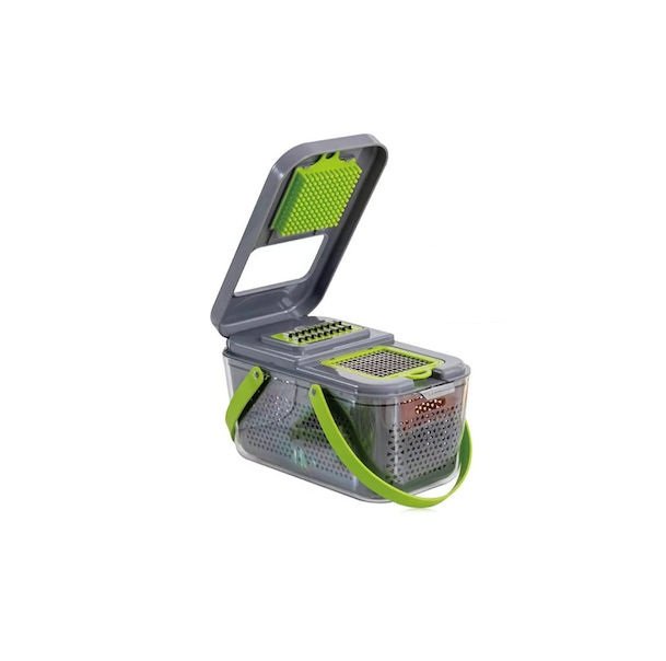 Είναι κατασκευασμένος από πλαστικό και σας δίνει τη δυνατότητα να κόψετε τα λαχανικά σας σε συγκεκριμένο σχήμα. Καθαρίζεται εύκολα και γρήγορα. Είναι ελαφρύ και εργονομικό εργαλείο, ιδανικό για γρήγορες και εύκολες παρασκευές. Υπάρχει δυνατότητα κοπής φρούτων και λαχανικών, καθώς και καλάθια αποθήκευσης για τη διευκόλυνσή σας. Διαθέτει λαβή για εύκολη μεταφορά.