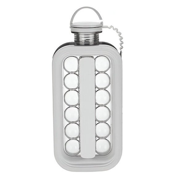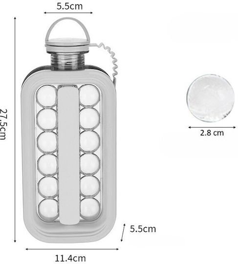 Portable 2-in-1 Ice Cube Tray, Flippy, Bottle-Shaped Tray, Diameter 3 cm, Multifunctional, 17 Ice Balls, 27.5 x 11.4 x 5.5 cm, White Color