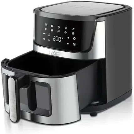 Φριτέζα αέρος με χωρητικότητα 9 λίτρα και ισχύ 1950W. Η φριτέζα αέρος της εταιρείας RAF προσφέρει υγιεινές επιλογές μαγειρέματος καθώς απαιτεί λιγότερο λάδι. Χάρη στην τεχνολογία ομοιόμορφης κατανομής και κυκλοφορίας αέρα 360°, εξασφαλίζεται άψογο ψήσιμο χωρίς απώλειες. Είναι ιδανική για γρήγορο μαγείρεμα και μπορεί να μειώσει τη χρήση λαδιού έως και 80%. Καθαρίζεται εύκολα και δημιουργεί λιγότερη μυρωδιά σε σύγκριση με τις παραδοσιακές φριτέζες.