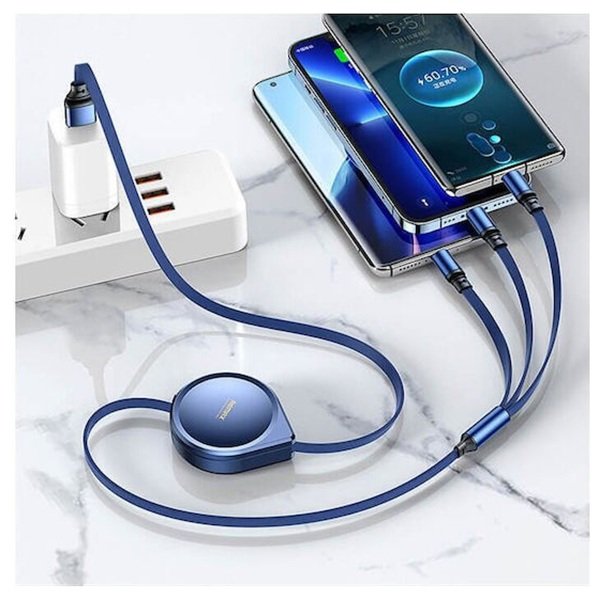 Remax RC-C018 Flat / Retractable USB to Lightning / Type-C / micro USB Cable Μπλε 1.2m