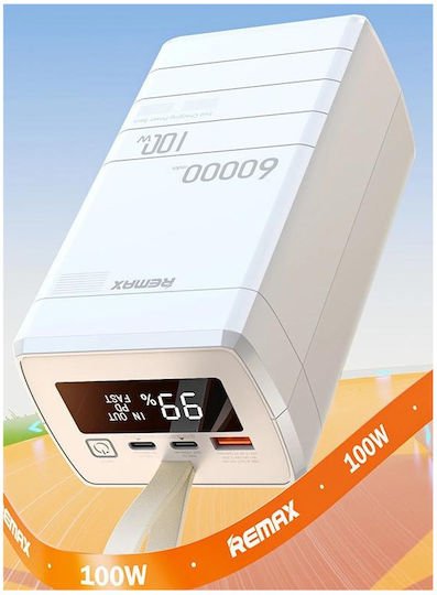 Remax RPP-650 Power Bank 60000mAh 100W με Θύρα USB-A και 2 Θύρες USB-C Power Delivery Λευκό 55342320