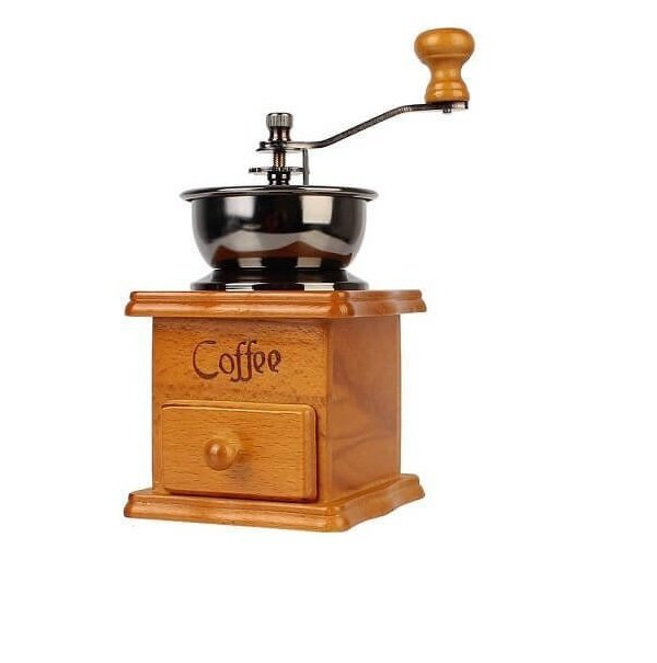 Παραδοσιακός χειροκίνητος μύλος καφέ με κωνικούς δίσκους άλεσης, μεγάλο δοχείο κόκκων και δοχείο συλλογής αλεσμένου καφέ από φυσικό ξύλο. Προσφέρει υψηλή απόδοση και ποιότητα στην άλεση με τα κεραμικά κωνικά μαχαίρια που διαθέτει. Ο αλεσμένος καφές συλλέγεται στο παραδοσιακό ξύλινο συρταράκι.