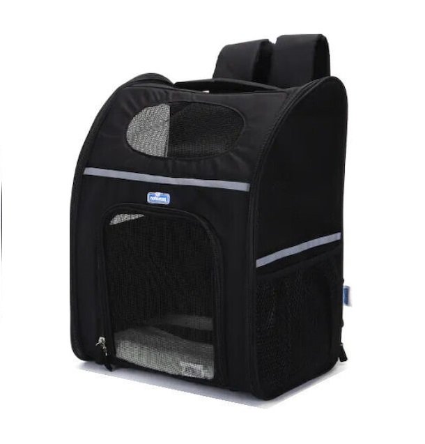 Σακίδιο πλάτης για την ασφαλή και εύκολη μεταφορά του σκύλου ή της γάτας σας από την εταιρεία Nobleza, σε μαύρο χρώμα. Το σακίδιο πλάτης, όπως και ο μάρσιπος, σας επιτρέπει να έχετε τα χέρια σας ελεύθερα και είναι κατάλληλο για δραστηριότητες που απαιτούν την ελευθερία των κινήσεων σας. Προτείνεται για σκύλο με μεγαλύτερο βάρος, όμως θα πρέπει να είναι εξοικειωμένος στη μεταφορά, καθώς δεν θα έχει καθόλου οπτική επαφή μαζί σας.