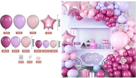 DIY σύνθεση 105 μπαλόνια σε Μώβ και Ρόζ Χρώμα