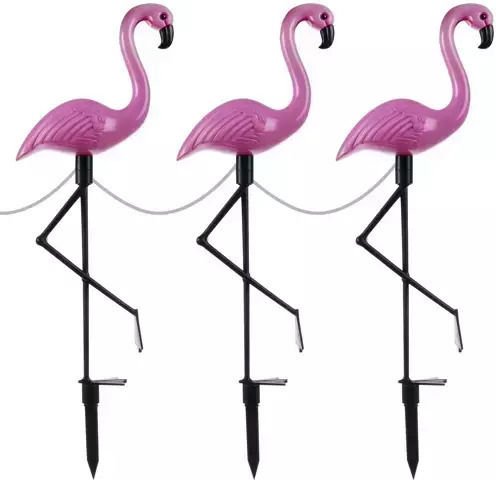 Ηλιακό φωτιστικό κήπου flamingo Gardlov 21151 SOLAR FLAMING LAMPS 3 ΤΕΜΑΧΙΑ. Κάθε φλαμίνγκο διαθέτει 2 LED που φωτίζουν τη φιγούρα (στο ράμφος και την κοιλιά του). Ιδανικό για την προσθήκη γοητείας στον κήπο.
