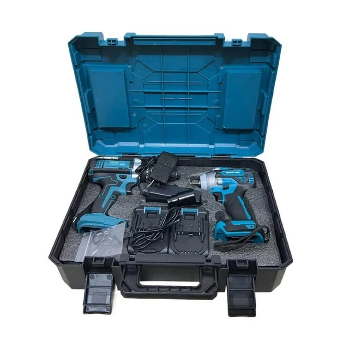 Περιλαμβάνει δραπανοκατσάβιδο και παλμικό μπουλονόκλειδο με επαναφορτιζόμενες μπαταρίες λιθίου, όλα προσεκτικά τοποθετημένα σε ένα ανθεκτικό βαλιτσάκι μεταφοράς για εύκολη αποθήκευση και μετακίνηση.
