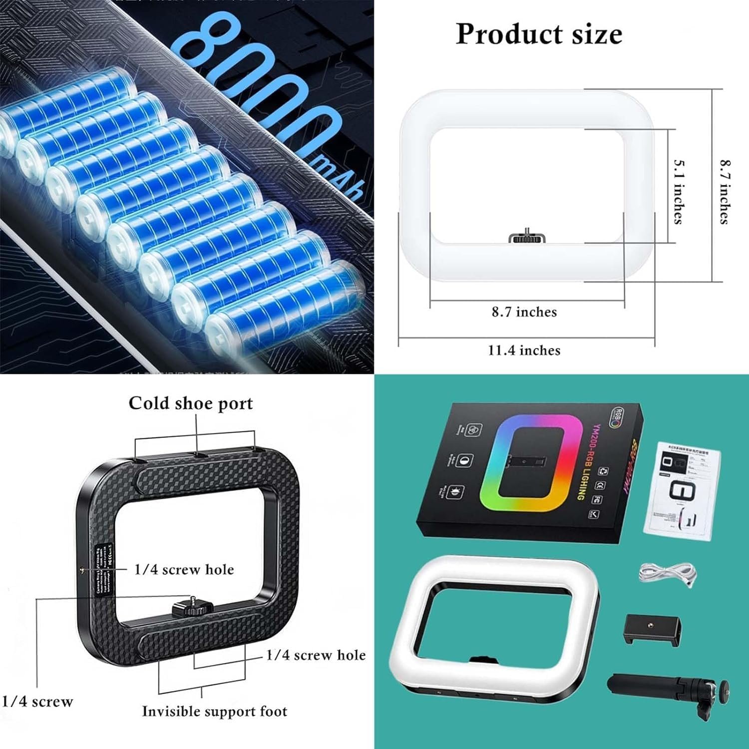 - Χρώμα RGB 36 Δυναμικές Λειτουργίες Φωτισμού (2500K–8500K) & Υψηλός CRI 95+ 8500K Φως LED Υπερ-Φωτεινότητας – Προσφέρει 7 λειτουργίες χρώματος και 36 ειδικά εφέ, ιδανικό για δημιουργική φωτογραφία, vlogging και ζωντανή μετάδοση. Δημιουργήστε βίντεο επαγγελματικής ποιότητας με αυτόν τον ολοκληρωμένο σταθεροποιητή θήκης φορητού τηλεφώνου και το κιτ φωτισμού LED RGB. Ιδανικό για Κινηματογραφικές Παραγωγές & YouTube