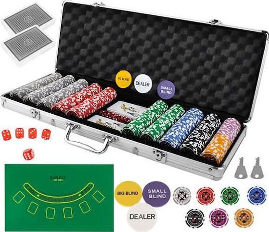 SPM Σετ 500 Μάρκες Poker 10gr σε Βαλίτσα με 5 Τράπουλες και Τσόχα 9538