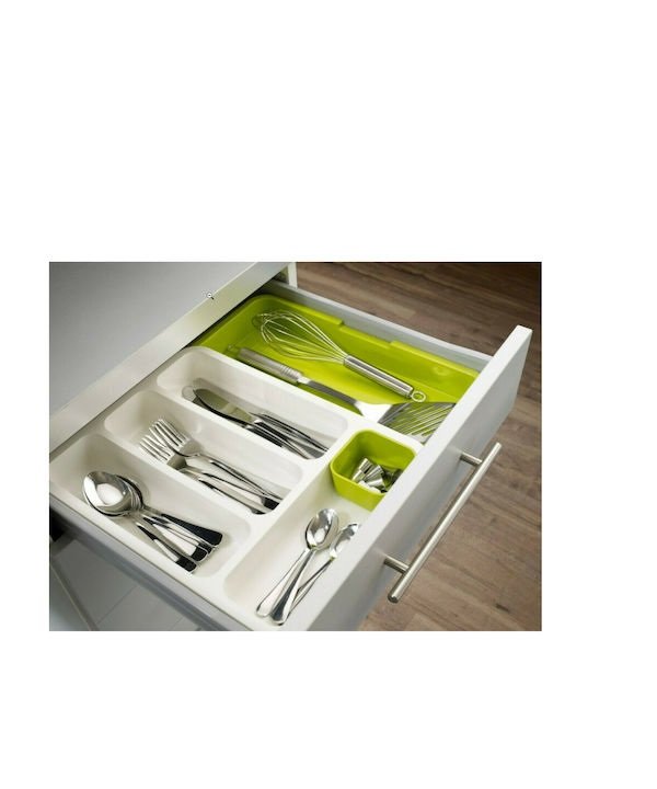Επεκτεινόμενη θήκη για μαχαιροπίρουνα κατασκευασμένη από πλαστικό. Διαθέτει 4 μεγάλες θήκες για τα κουτάλια, τα πιρούνια και τα μαχαίρια καθώς και μια μικρή μετακινούμενη θήκη για μικρά αντικείμενα. Κατάλληλη για το συρτάρι της κουζίνας σας.