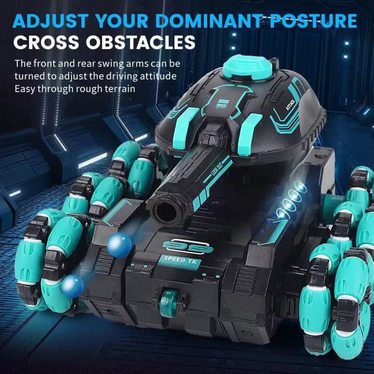 Η ρίψη σφαιρών νερού Orbiz (ασφαλείς, μη τοξικές, ιδανικές για εσωτερικό & εξωτερικό παιχνίδι) δίνει ρεαλιστικό στοιχείο μάχης. Το τανκ διαθέτει ρεαλιστικούς ήχους, φωτισμό LED, stunt drift κινήσεις και περιστροφή 360°, κάνοντάς το μοναδικό στην κατηγορία του.
