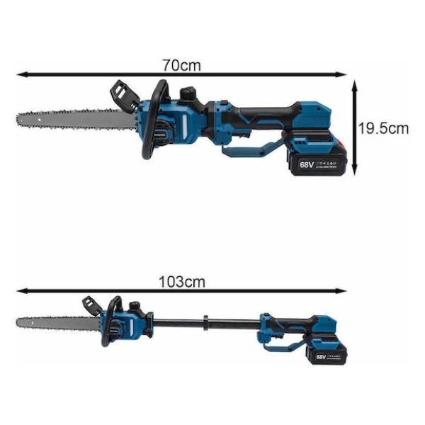 Το τηλεσκοπικό κοντάρι, με δυνατότητα ρύθμισης από 70 έως 103cm, σας δίνει τη δυνατότητα να φτάνετε ψηλά κλαδιά χωρίς τη χρήση σκάλας, αυξάνοντας την ασφάλεια και την άνεση κατά τη χρήση. Η ασύρματη λειτουργία με δύο μπαταρίες 21V εξασφαλίζει ελευθερία κινήσεων και μεγαλύτερη αυτονομία, ώστε να ολοκληρώνετε τις εργασίες σας χωρίς διακοπές.