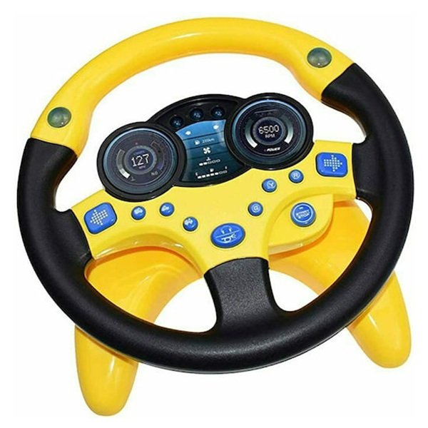 Ηλεκτρικό τιμόνι με περιστροφή 360°, φώτα που αναβοσβήνουν, μουσική και ηχητικά εφέ αυτοκινήτου. Κατασκευασμένο από αντιαλλεργικό πλαστικό και με ισχυρή βεντούζα για σταθερή τοποθέτηση σε λείες επιφάνειες. Ιδανικό δώρο για παιδιά.