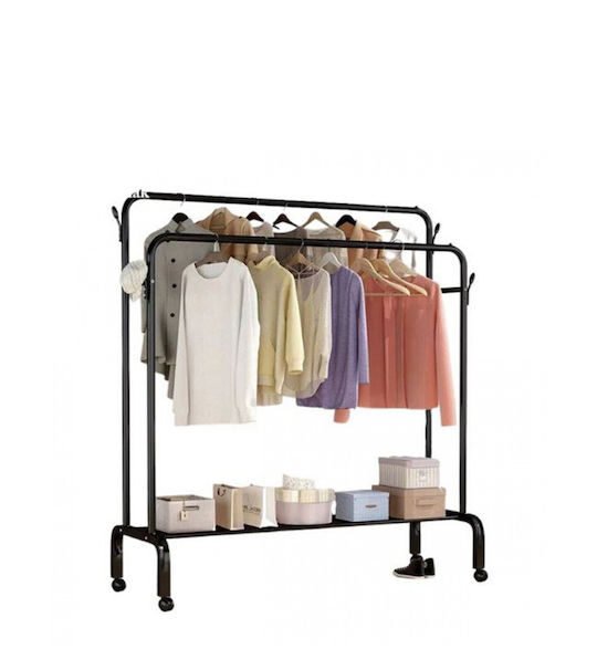 Τροχήλατη Κρεμάστρα Δαπέδου από Μέταλλο Μαύρη 110x57x150cm Κωδικός: 53574846