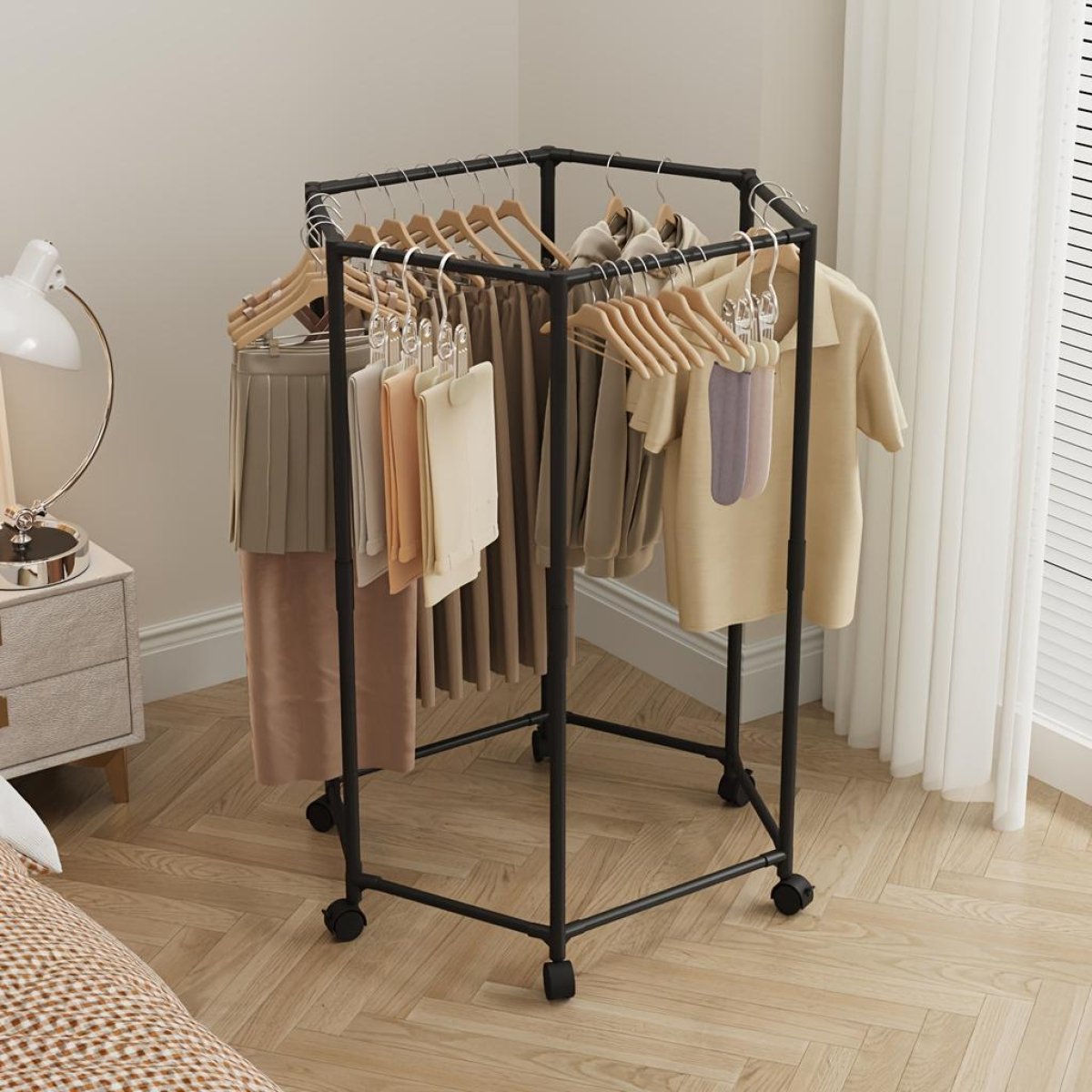 Τροχήλατη Μεταλλική Εξαγωνική Κρεμάστρα Ρούχων 80x123cm Μαύρη A088